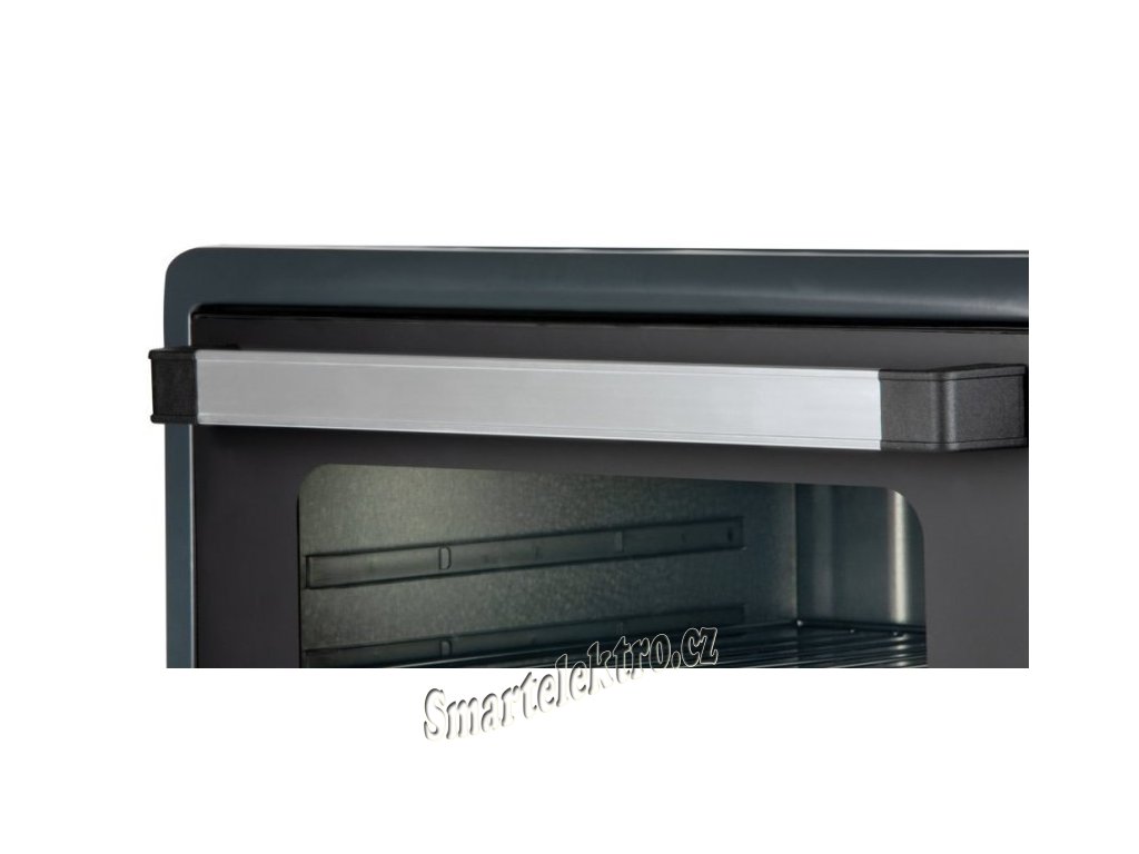 Funkce konvekce zajišťuje rovnoměrné rozložení tepla, zatímco mechanické ovládání a 90 minutový časovač přispívají ke snadnému používání. Vnitřní osvětlení a dvojité sklo průzoru zajišťují jasnou viditelnost bez nutnosti otevírat dvířka.