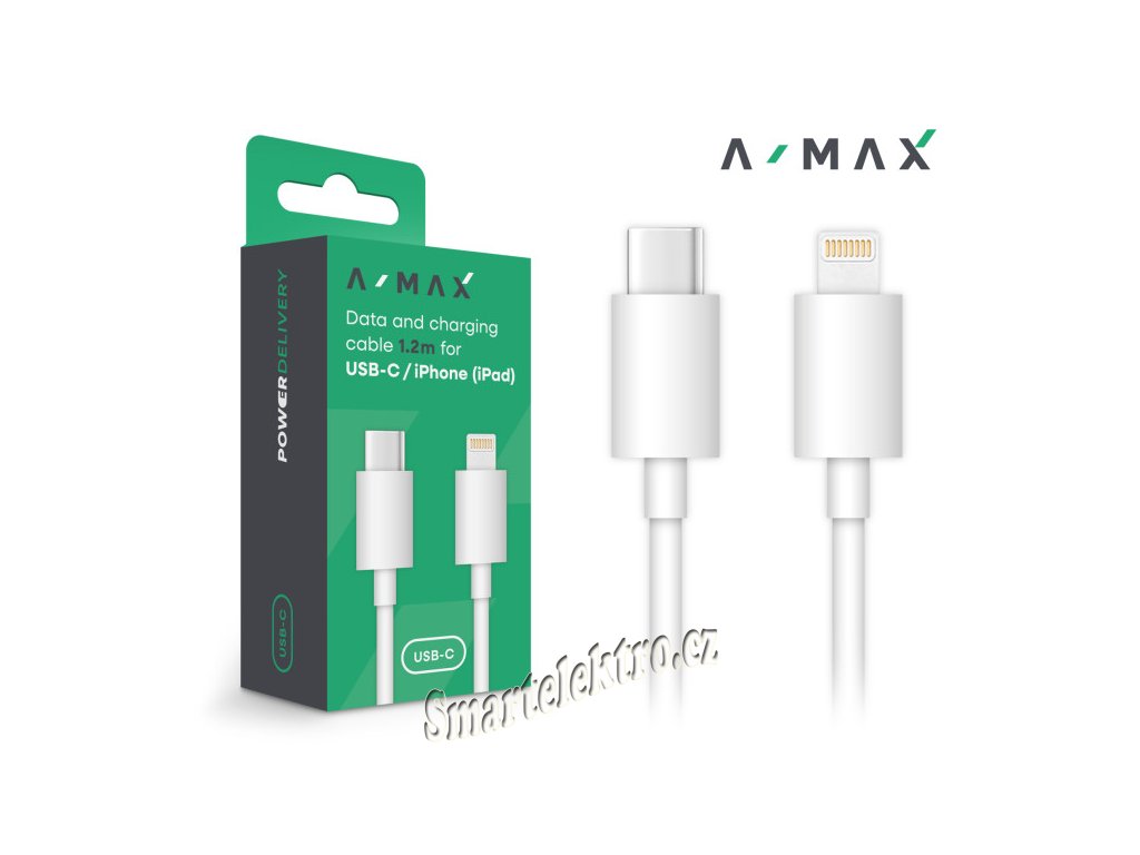 Datový a nabíjecí kabel A-MAX USB-C/Lightning 1,2m, bílý
