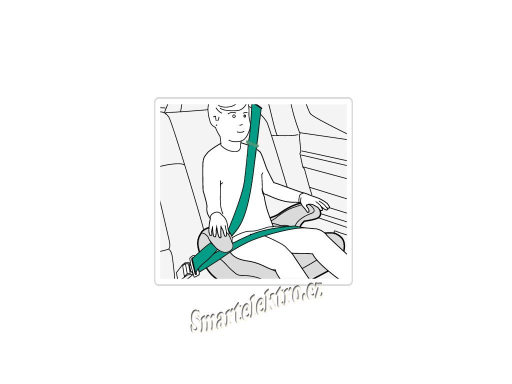 Dítě se připoutá pomocí samonavíjecích 3-bodových bezpečnostních pásů vozidla. Samotný podsedák se umístí ve vozidle na zadní sedadla čelem ve směru jízdy.