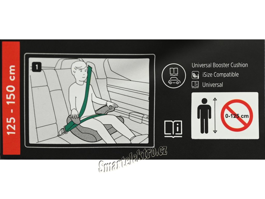 Podsedák, s novou homologací ECE R129 (kompatibilní s normou iSize). Podsedák je vhodný pro děti s výškou od 125 do 150 cm.