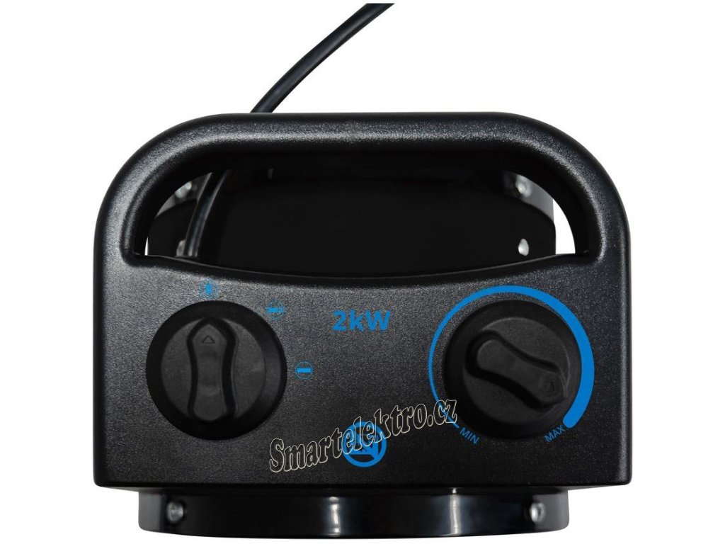 Dva stupně vytápění (1 kW - 2 kW) • rychlé rozptýlení ohřátého vzduchu ventilátorem • prostorový termostat, udržující stálou teplotu automatickým zapínáním (vypínáním) topné desky.