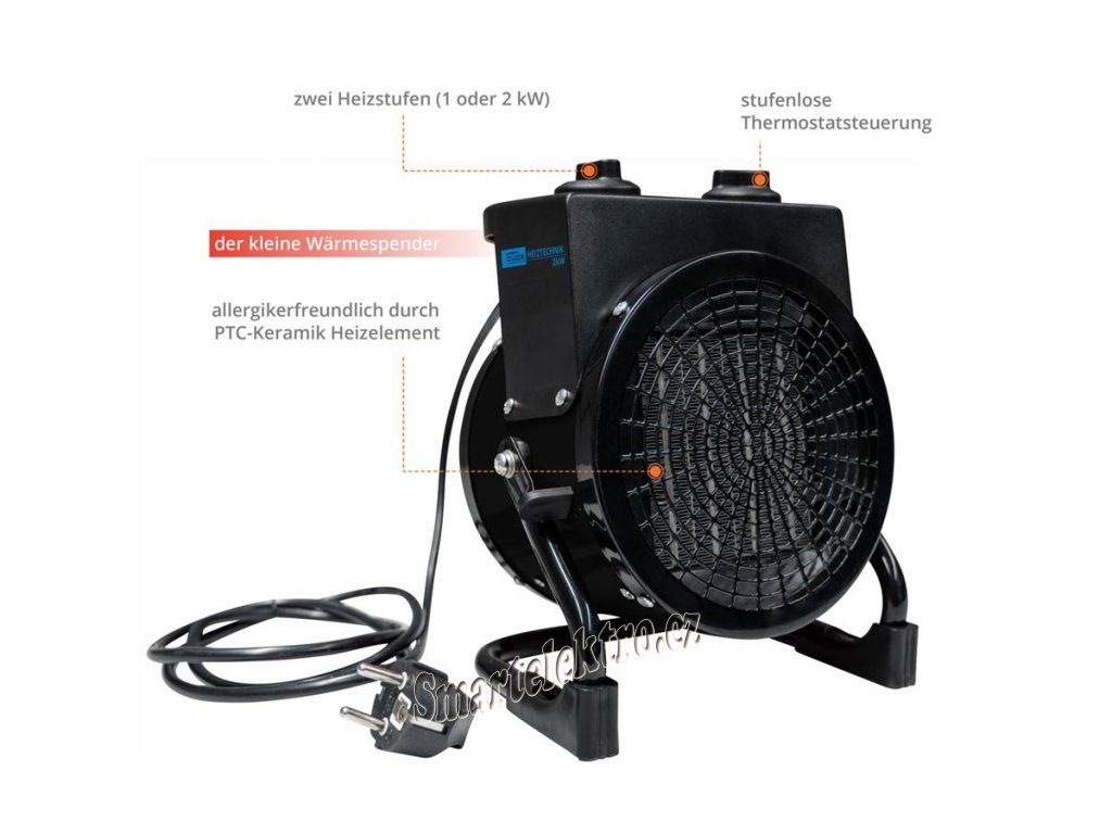 Přenosné keramické topidlo, určené k vytápění menších prostor - chat, dílen, sklepů, garáží apod. PTC topné články (→ vysoká účinnost ohřevu vzduchu/nižší spotřeba elektrické...