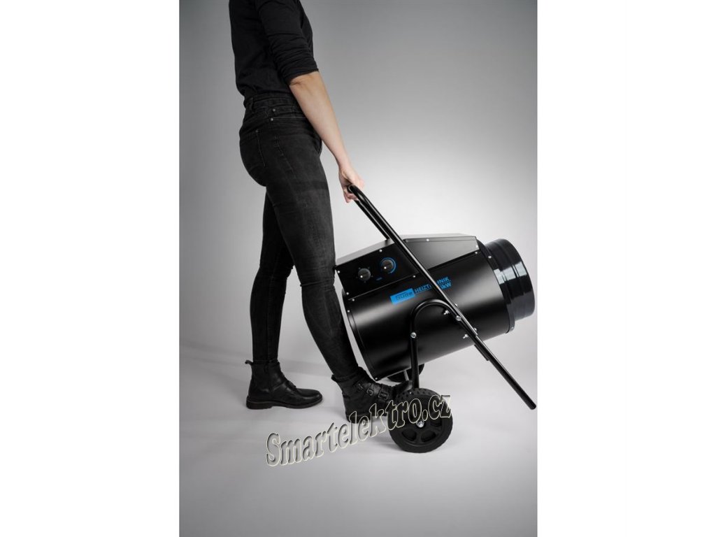 Prostorový termostat, udržující stálou teplotu automatickým zapínáním (vypínáním) topné spirály • bezpečný provoz topidla, zaručený pojistkou proti přehřátí • pohodlné převážení zásluhou velkých pojezdových kol.
