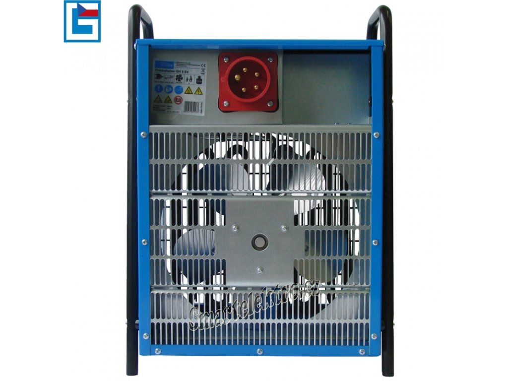 Výkonné elektrické topidlo, určené k vytápění komerčních prostor (→ autodílny, skladové/montážní haly, průmyslové provozy), bodovému vyhřívání venkovních pracovišť, rozmrazování strojů, vozidel apod. Max. topný výkon: 9 kW (→ 7.740 kcal/hod., 2 topné stupně: 4,5 kW/9 kW), prostorový termostat (→ automatické zapínání/vypínání topné spirály po dosažení nastavené teploty), ventilátor. Konstrukce: skříň topidla z oceli, topná spirála s ochrannou mřížkou, zástrčka 400 V, trubkový stojný rám. Celkové rozměry (d x š x v): 345 x 300 x 500 mm, elektrická ochranná třída: IP X4.