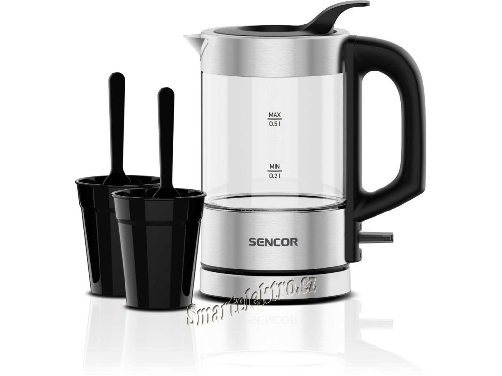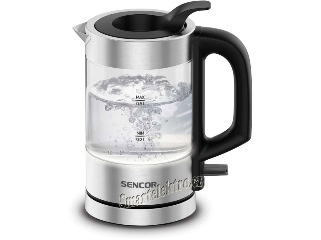 Malá a kompaktní rychlovarná konvice, Sencor SWK 160SS je ideální na cesty nebo pro úsporu místa v malé kuchyni. Kapacita konvice je 0.5 l vody a je vyrobena z nerezové oceli a kvalitního borosilikátového skla odolného proti změnám teplot. Skryté topné těleso s výkonem 1100 W zajistí rychlou přípravu horké vody. Plnění vodou jde snadno přes praktické víko, které není potřeba otvírat nebo sundávat dolů. Konvice je vybavena otočnou základnou se středovým konektorem pro uložení konvice z 360°. Bezpečnost hlídají pojistky proti vyvaření, přehřátí a je vybavena automatickým vypnutím po dosažení varu. Čistou vodu zajistí vyjímatelný filtr proti nečistotám a vodnímu kameni. Úložný prostor pro přívodný kabel se nachází pod základnou. V balení se taky nachází dva plastové šálky a lžičky z materiálu, který neobsahuje BPA.