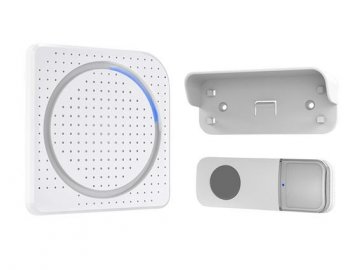 Bateriový bezdrátový zvonek s elegantním stojánkem.