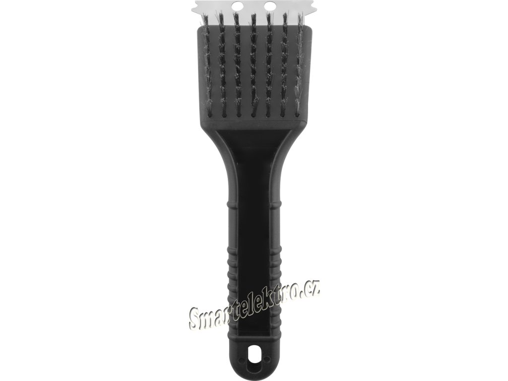 Trojúhelníkový drátěný kartáč na gril o rozměrech 30x17 cm.