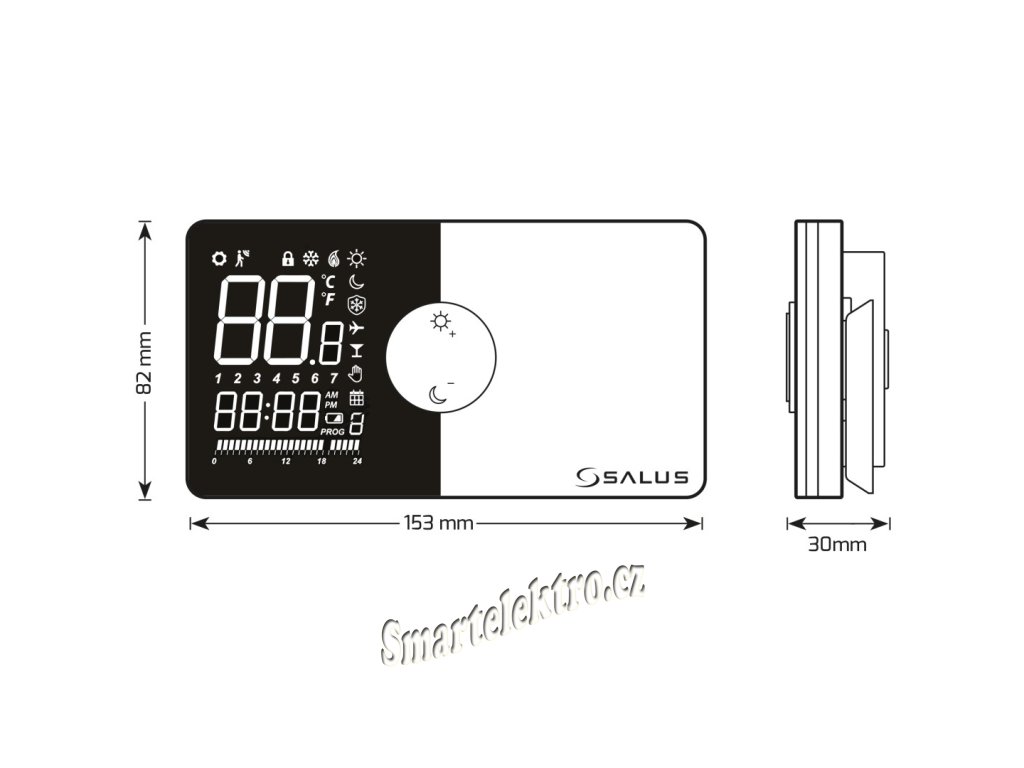 * Rozměry: 153 x 82 x 30 mm (termostat)