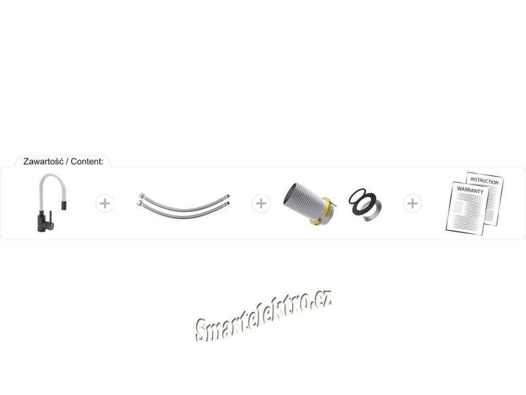 - flexibilní výtok, který lze dát do libovolného tvaru, přesně přizpůsobující úhel, výšku a rozsah vodního paprsku vašim potřebám