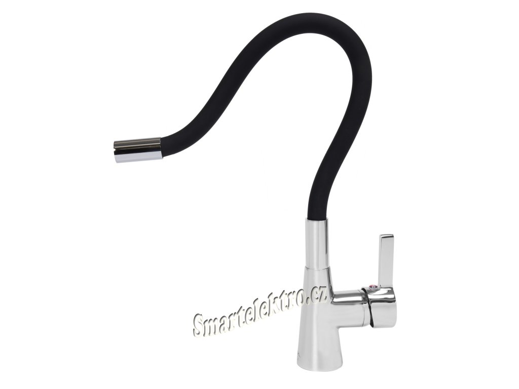 Dřezová baterie z mosazi s jedinečnou konstrukcí s ohebnou hadicí.