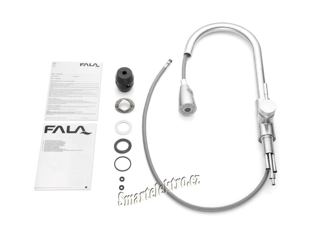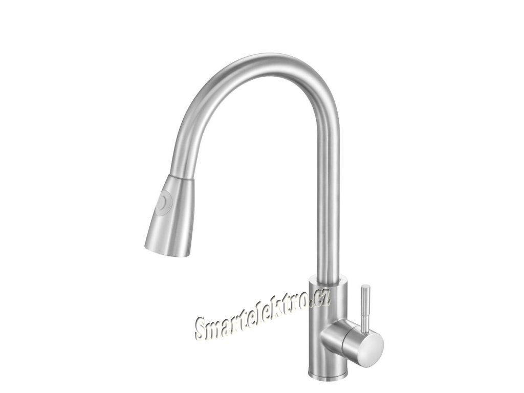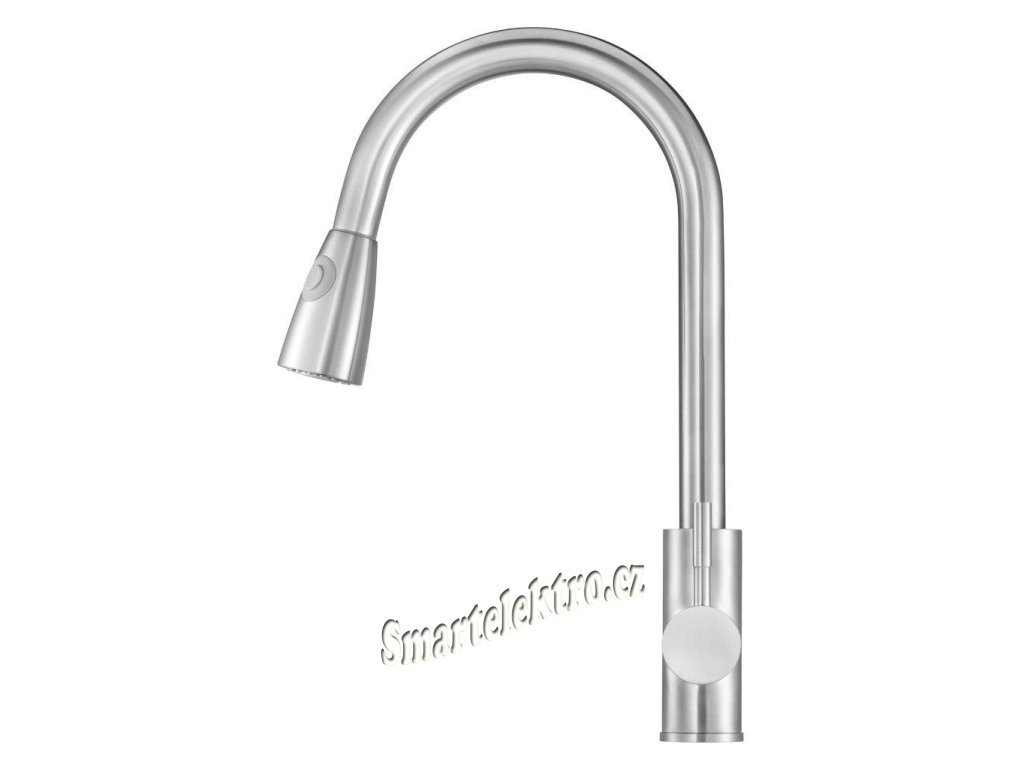 Dřezová baterie z mosazi s jedinečnou konstrukcí s ohebnou hadicí a nastavitelnou tryskou.