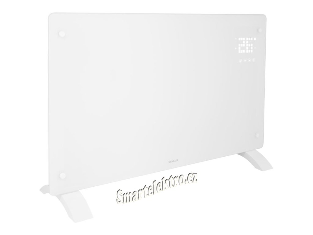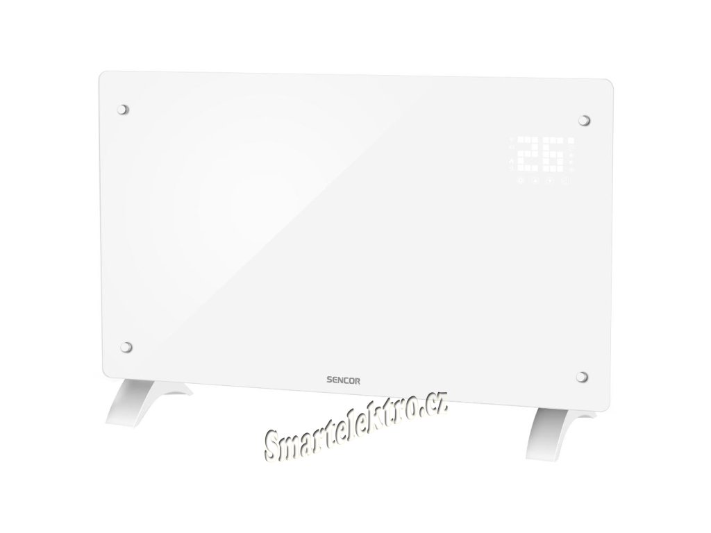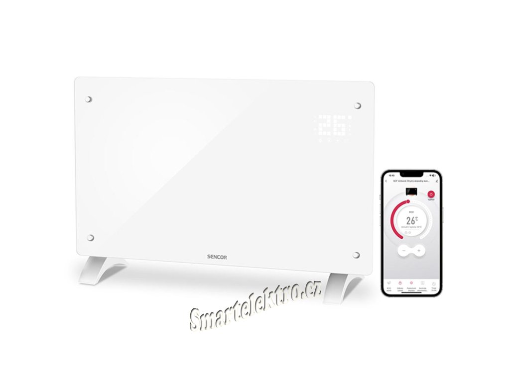 Chytrý skleněný konvektor Wi-Fi Sencor SCF 4740WH, ovládání aplikací, 2 nastavení ohřevu, teploty 5–45°C, LED displej s dotykovým ovládáním, časovač, funkce ECO,...
