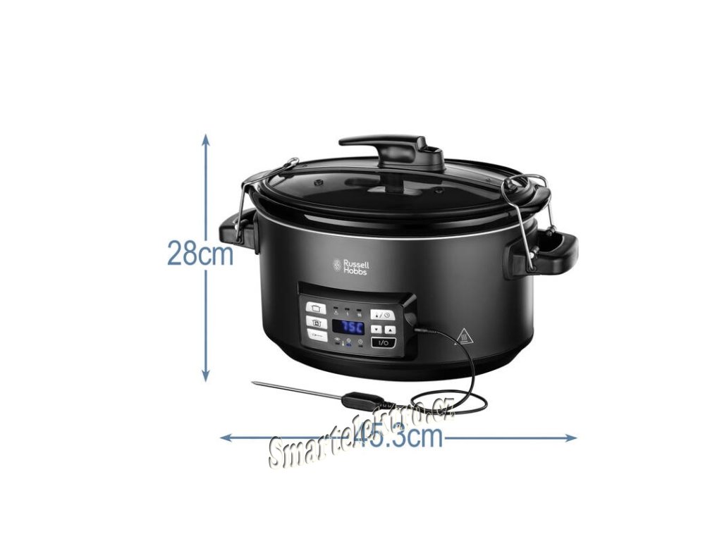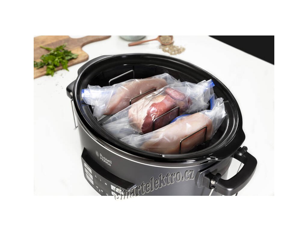 Prostřednictvím displeje s dotykovými tlačítky nastavíte vhodný program, teplotu a celkovou dobu ohřevu. Zejména při použití programu pro pomalé vaření zajisté oceníte funkci pro udržení teploty. Jídlo tak budete vždy servírovat dostatečně teplé. Součástí vybavení je teplotní sonda a vyjímatelná mřížka, která je určena pro přípravu jednotlivých porcí pokrmů metodou Sous Vide. Příkon pomalého hrnce Russell Hobbs 25630-56 činí 350 W. |