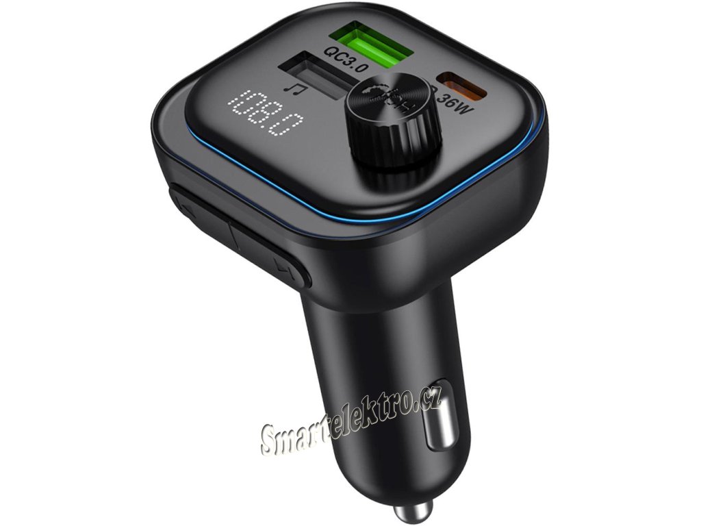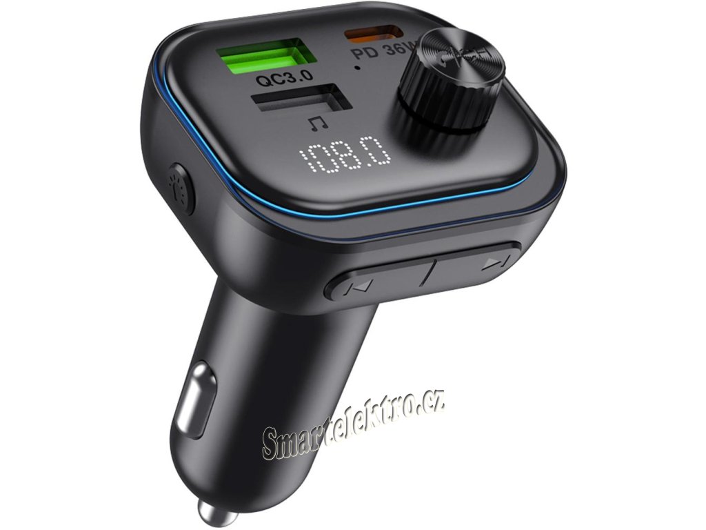 Bluetooth FM modulátor do auta s USB-C PD a QC3.0 rychlonabíječkou