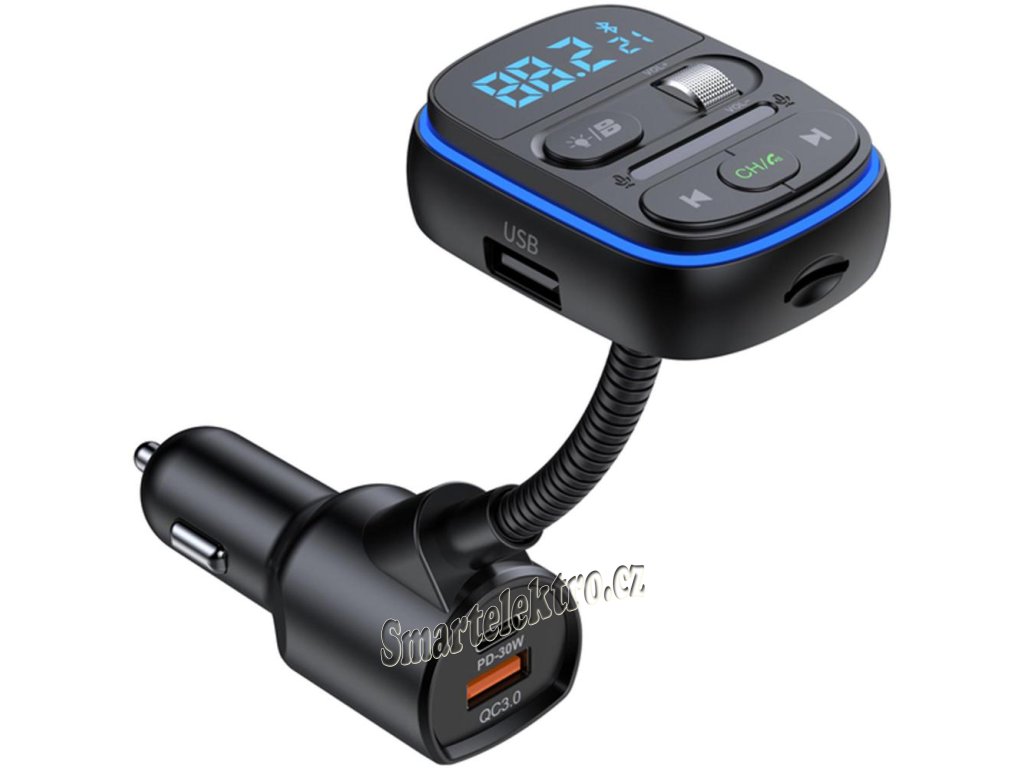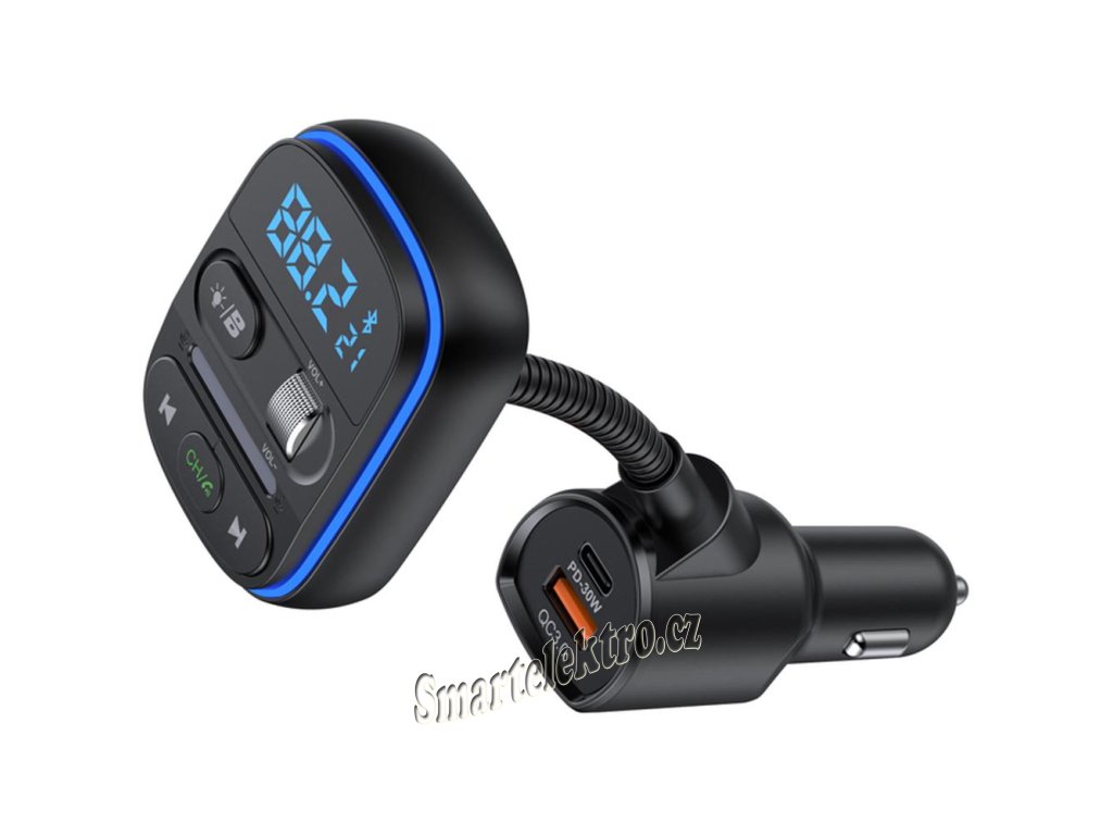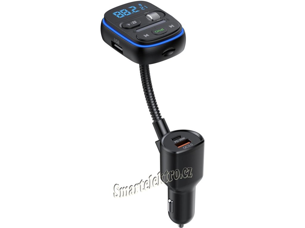 Bluetooth FM modulátor do auta s USB-C PD a QC3.0 rychlonabíječkou