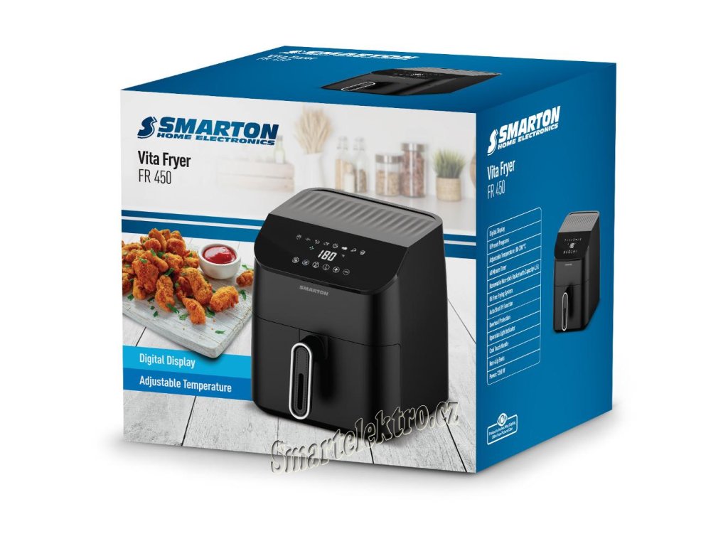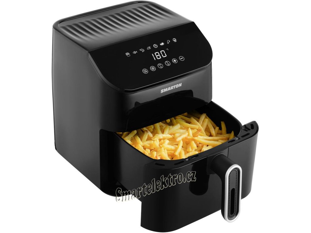 Horkovzdušná fritéza s nastavením teploty 160-220 °C, časovým spínačem a velkou nádobou s objemem 7,2 l. Až 50% úspora oproti troubě