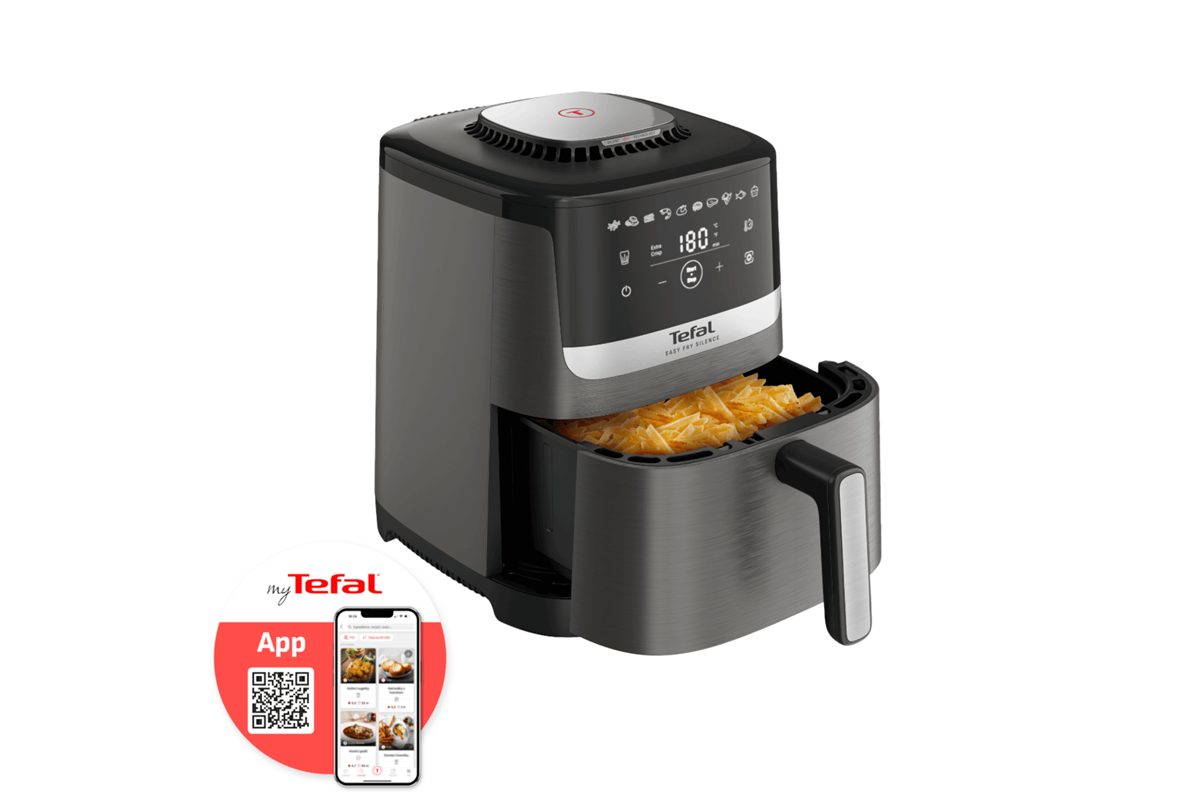 Nejtišší horkovzdušná fritéza EY551HE0 od značky Tefal. Díky technologii Tefal Silent Technology je fritování minimálně energicky náročné a rychlé. Teplotu lze manuálně nastavit v rozmezí od 40 do 220 °C. Vnitřní grilovací mřížka z litého hliníku je opatřena nepřilnavým povrchem a vestavěným odkapáváním. Slouží k dokonalému pečení všech potravin.
