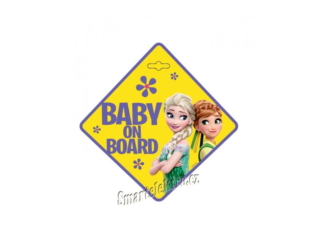 Cedulka s přísavkou Baby on board Ledové království. Přichycení na okno v autě pomocí průhledné přísavky.