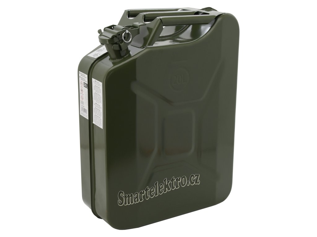 Kovový kanystr na pohonné hmoty o objemu 20 l.