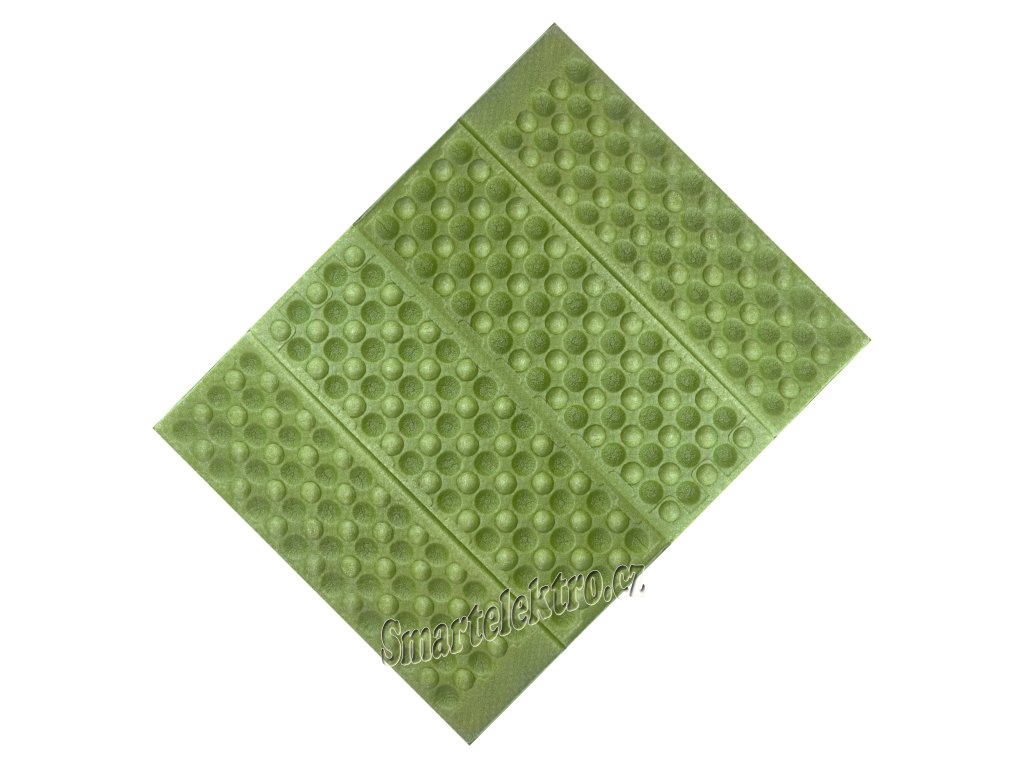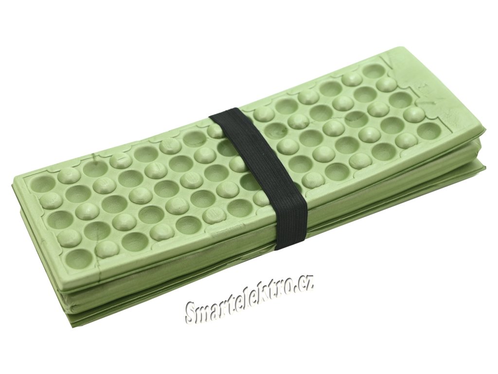 Podložka je vyrobena z odolného materiálu EVA, který vyniká velmi nízkou hmotností a dobrou tepelnou izolací. Strukturovaný „bublinkový“ povrch účinně omezuje přenos chladu a vlhkosti od země a zvyšuje komfort při sezení. Skládací provedení umožňuje snadné přenášení a skladování.