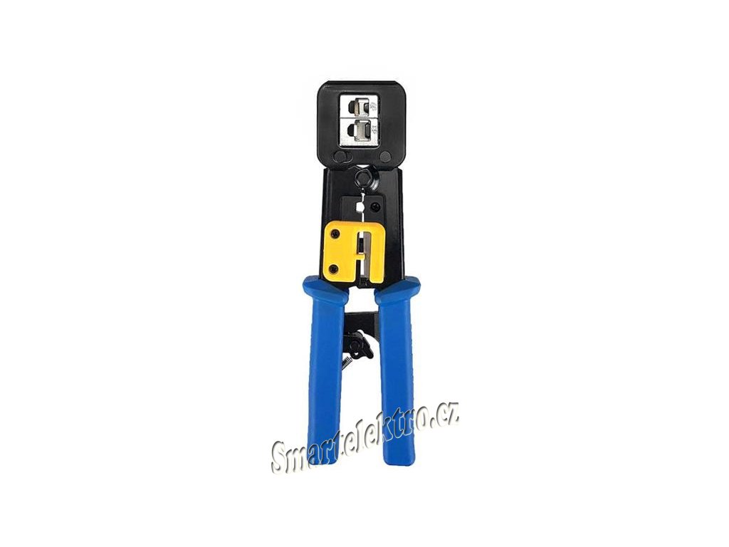 Krimpovací nástroj pro průchozí konektory RJ45, RJ12, RJ11, vhodná pomůcka, která se bude hodit v dílně každého kutila.
