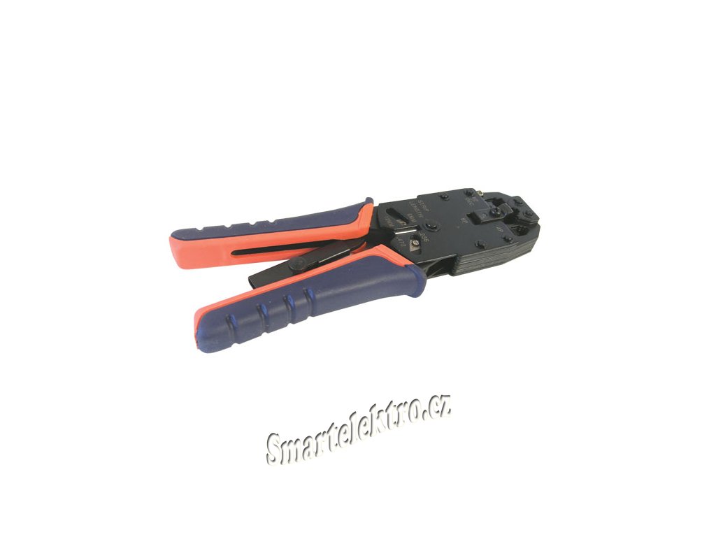 Kleště lisovací telefonní TIPA 501009 HQZamačkávací kleště na telefonní konektory 8P8C (RJ45), 6P6C (RJ12), 6P4C (RJ11), 6P2C včetně ořezávače a odizolovače. Zabudované mechanické blokování.