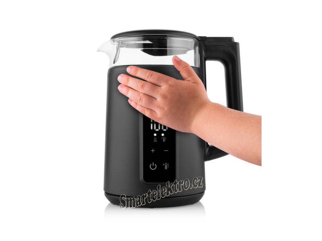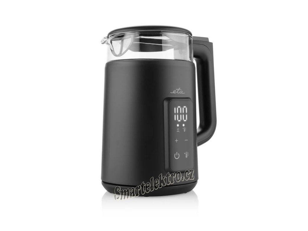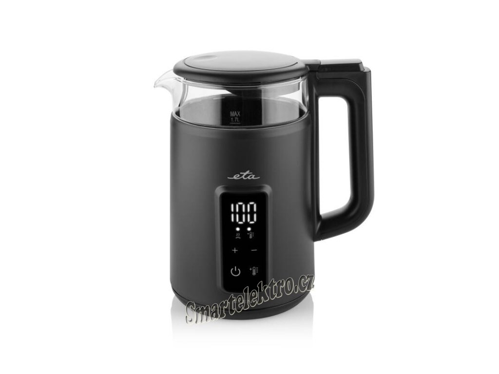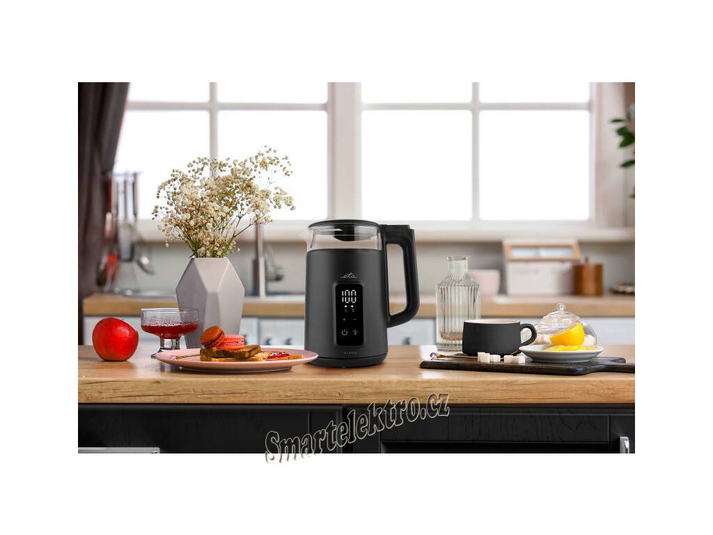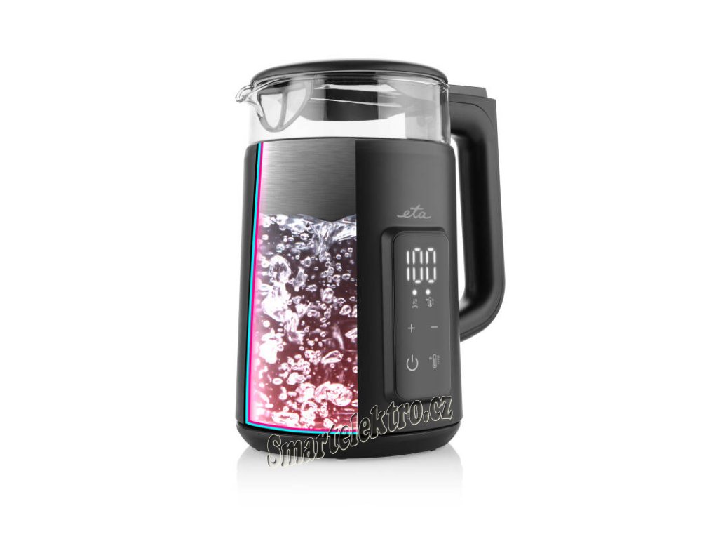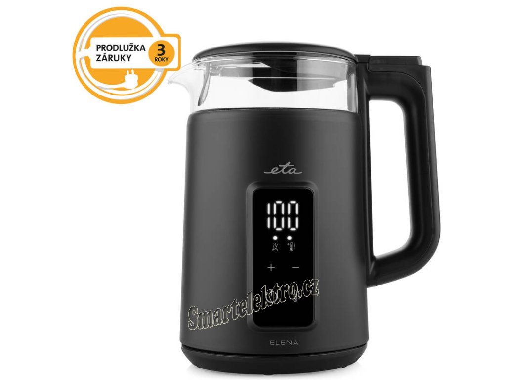 Skleněná rychlovarná konvice ETA Elena ve dvouplášťovém provedení bude nejen praktickým, ale i stylovým doplňkem každé moderní kuchyně. Na přehledném LED displeji pohodlně sledujete aktuální teplotu vody, zatímco pomocí intuitivních dotykových tlačítek si jednoduše zvolíte přesně takovou teplotu, jakou právě potřebujete – od 40 do 100 °C.