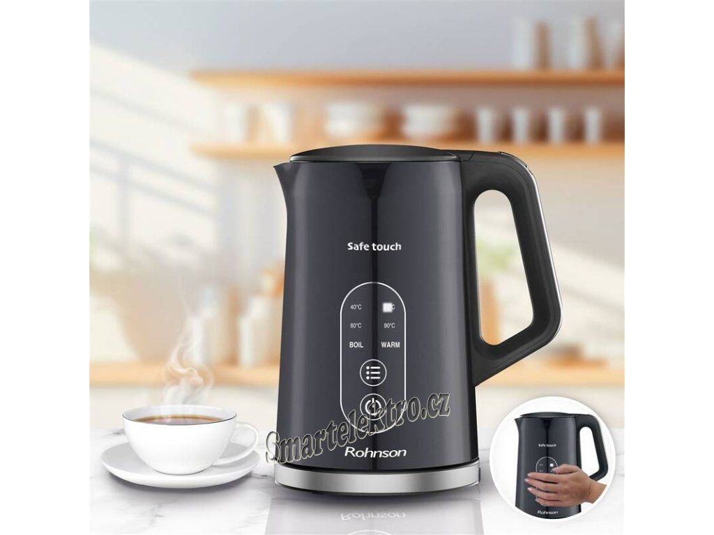 Rychlovarná konvice Rohnson R-7527 Safe Touch je ideální pomocník pro snadnou a rychlou přípravu čaje a jiných nápojů. Zvolit lze několik teplotních stupňů.