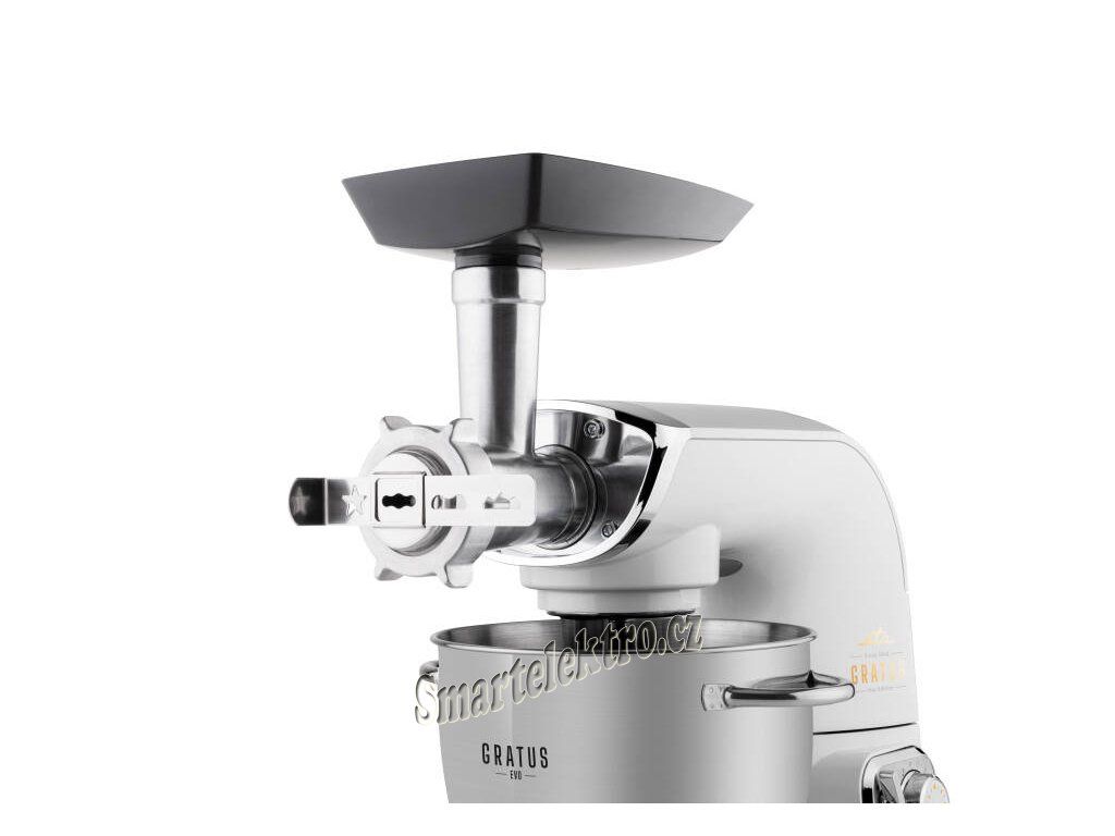 - Možnosti všestranného využití: sekání, strouhání, mletí masa, plnění uzenin, tvorba masových trubiček Kebbe, příprava protlačovaného cukroví, broušení nožů i odšťavňování citrusových plodů