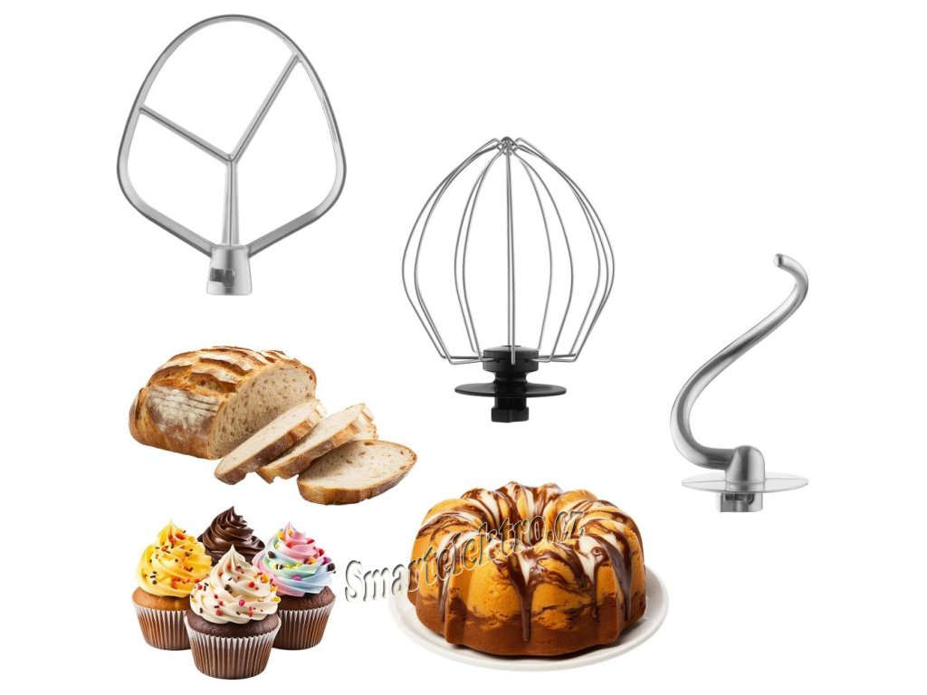 Multifunkční kuchyňský robot s kovovými převodovými koly, 1200W výkonným motorem, planetárním systémem míchání a bohatým příslušenstvím.