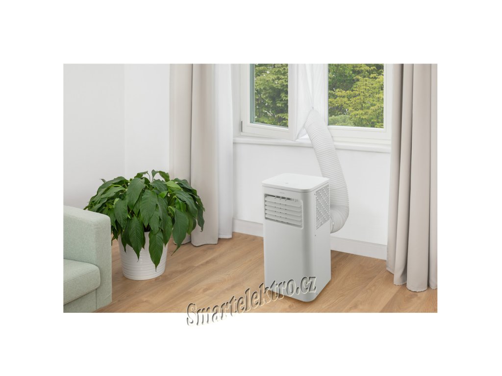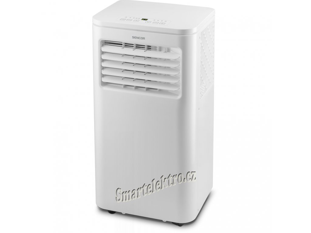 Mobilní klimatizace Sencor, energetická třída A++/A+++, výkon chlazení 9 000 BTU/h, výkon topení 8 000 BTU/h, 5 provozních režimů, dálkové ovládání, LCD display, funkce...