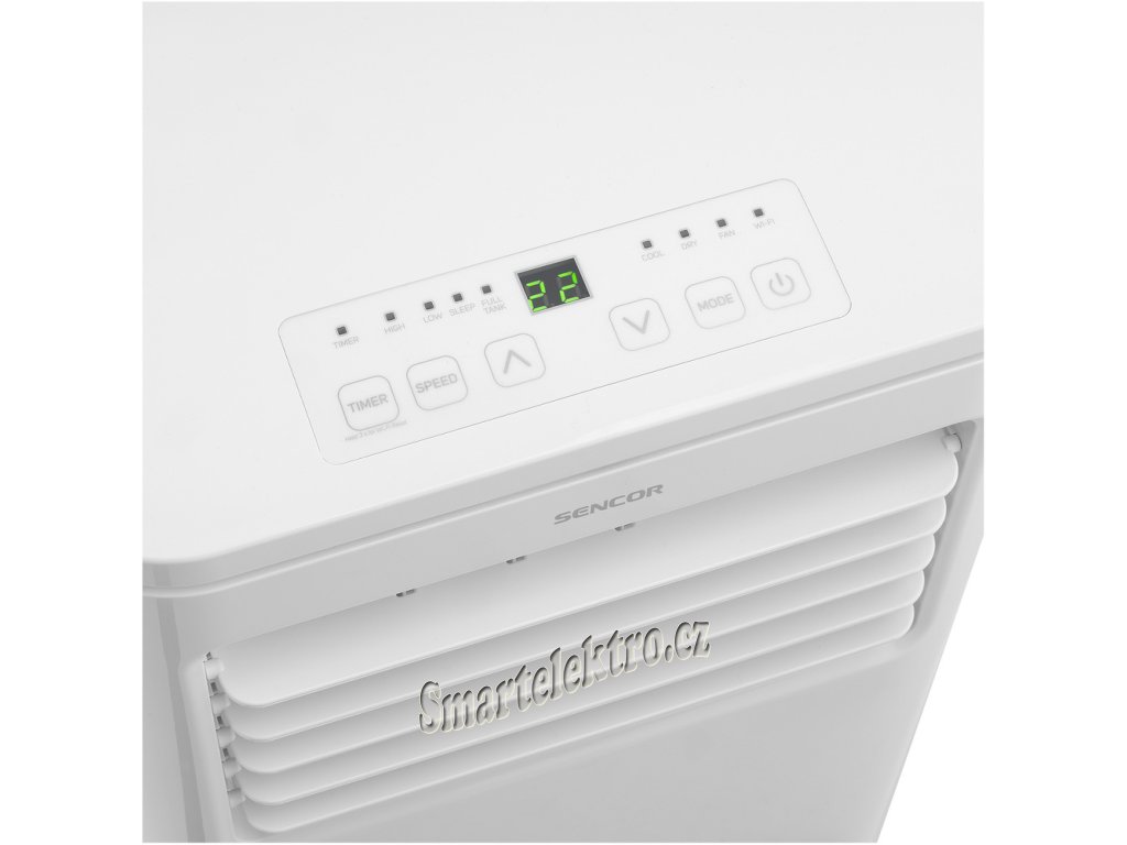 Mobilní klimatizace Sencor s Wi-Fi, en. třída A++/A+++, výkon 9000BTU/H, max. velikost místnosti: 31-35 m², 5 režimů, 4 rychlosti, časovač, LCD displej, ovládání přes Sencor Home