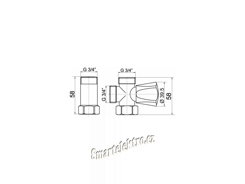NOVASERVIS PRAČKOVÝ VENTIL S MEZIKUSEM 3/4"X3/4"X3/4" CF3019