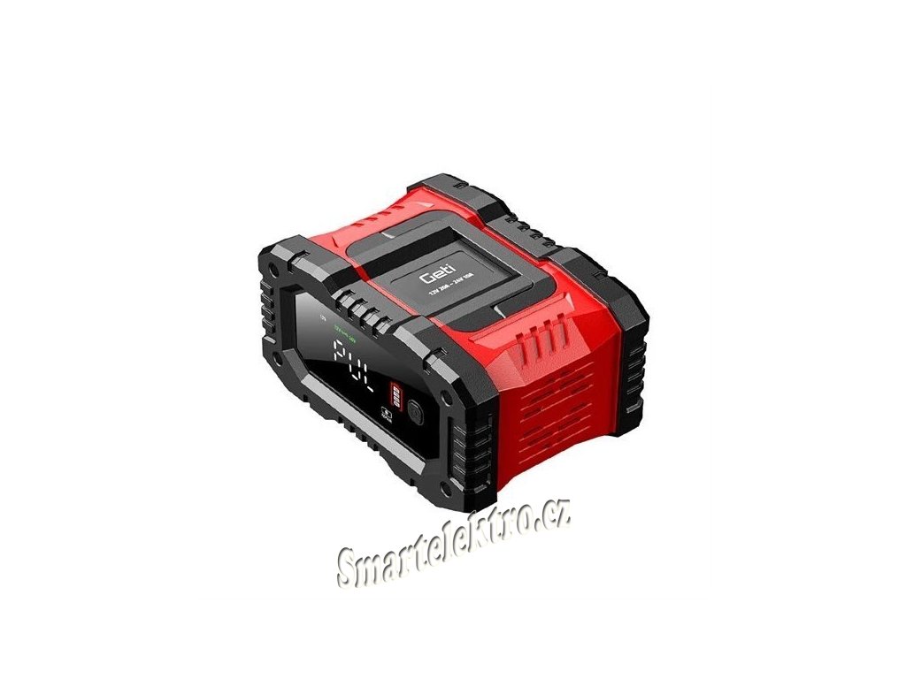 Nabíječka GETI GCA003 je inteligentní automatická nabíječka baterií, která je navržena pro nabíjení 12V a 24V olověných nebo LiFePO4 baterií s kapacitou 6Ah - 300Ah (12 V) nebo 6Ah-150Ah (24 V). Tyto akumulátory se nacházejí ve vozidlech, motocyklech, lodích, záložních zdrojích nebo sněžných skútrech. Automaticky diagnostikuje stav akumulátoru, zvolí vhodné nabíjecí napětí a zahájí nabíjení. Při ukončení nabíjení přejde nabíječka do udržovacího režimu, čímž se zabrání poškození akumulátoru přebitím a uchová jej v nabitém a připraveném stavu.