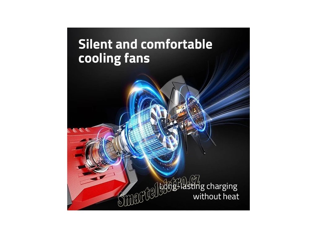 Powerbanka a kompresor s funkcí nouzového startování vozidla pomocí Smart klipsů, s LED displejem pro zobrazení aktuálního stavu nabití powerbanky.