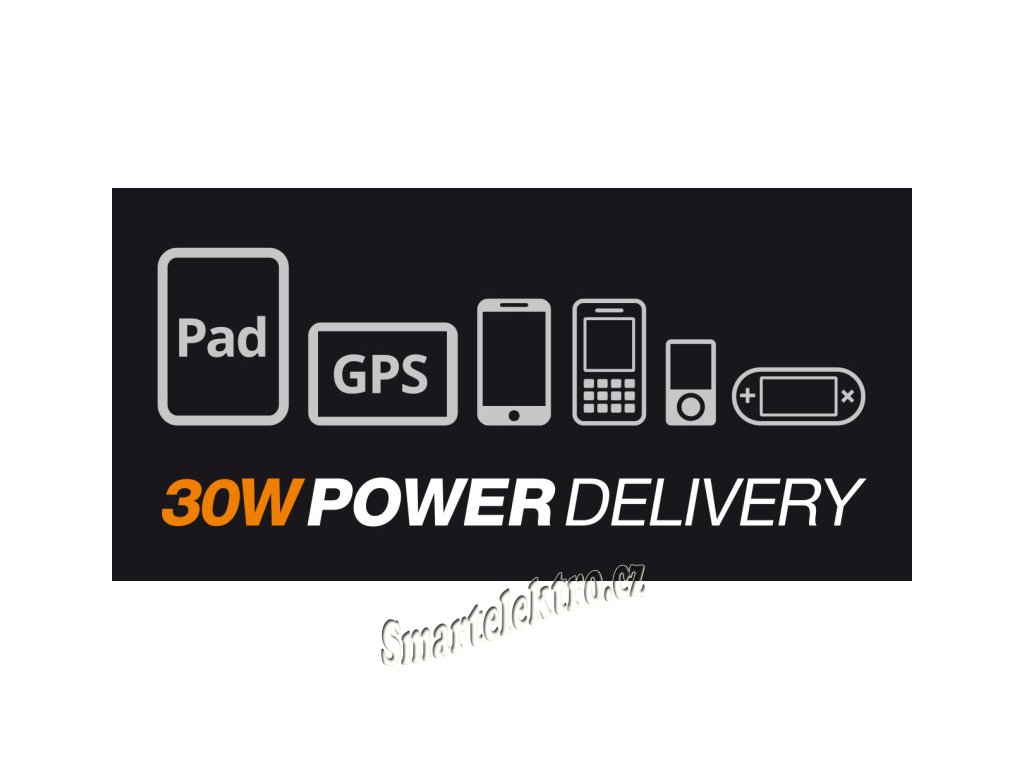 Chytrá nabíječka zvládne doplnit energii až dvěma přístrojům najednou, navíc je vybavena ultra rychlým USB-C portem s výkonem až 30W.