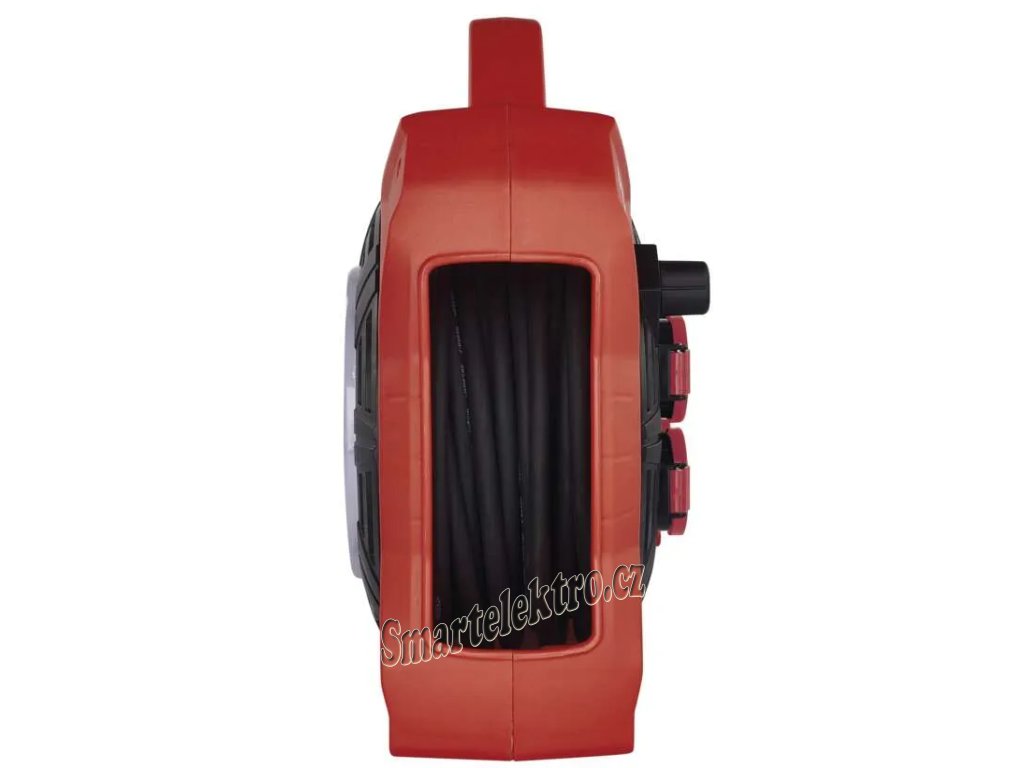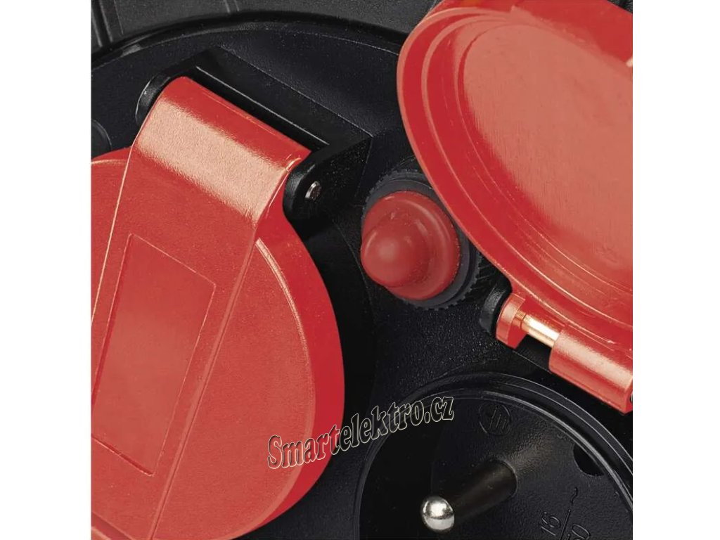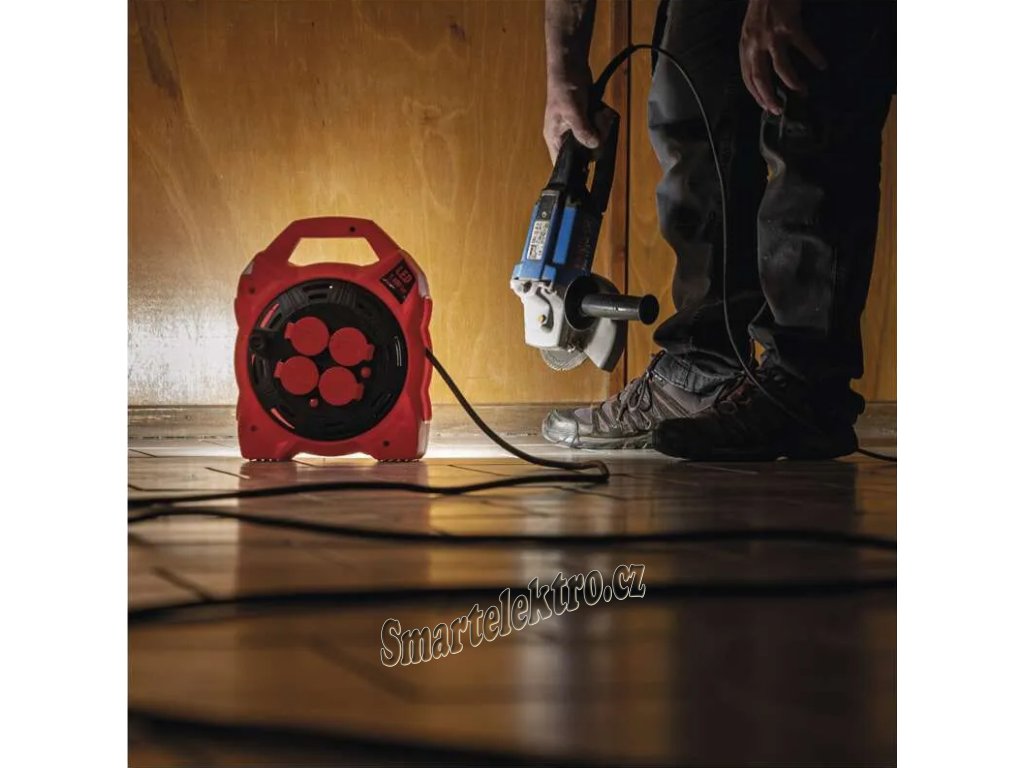 Naviják prodlužovacího kabelu s LED reflektorem umožňuje zapojení až 4 elektro zařízení současně. Zásuvky odpovídají napětí 230 V~. Tento profesionální prodlužovací kabel je vybaven tepelnou pojistkou, která bezpečně ochrání všechny vaše zařízení před přehřátím. Pokud se teplota prodlužovacího kabelu uvnitř bubnu dostane nad stanovenou mez tepelné pojistky, obvod se okamžitě přeruší. Díky této pojistce nedojde k poškození zařízení a vás ochrání před nebezpečným úrazem.