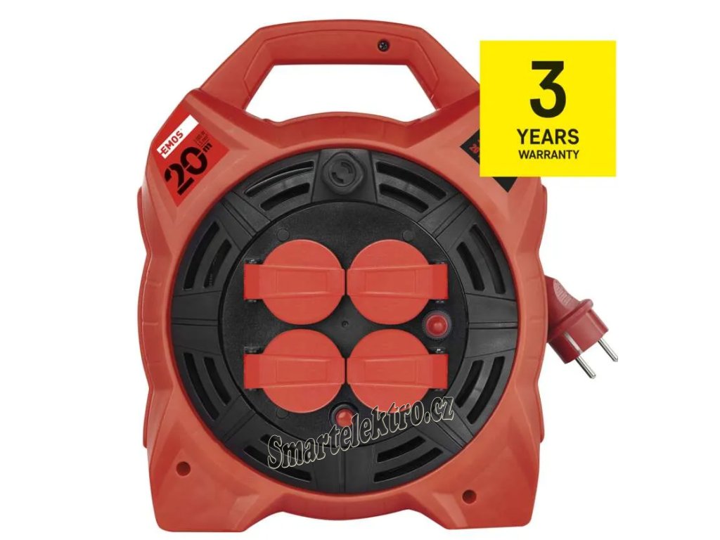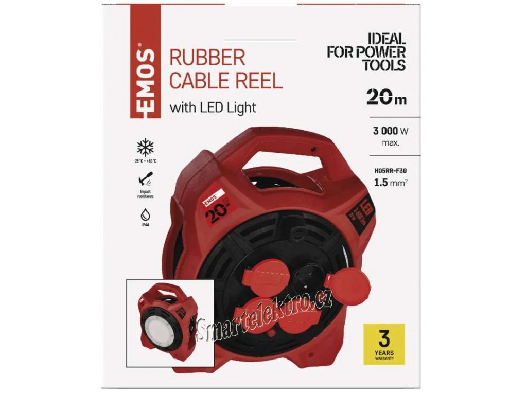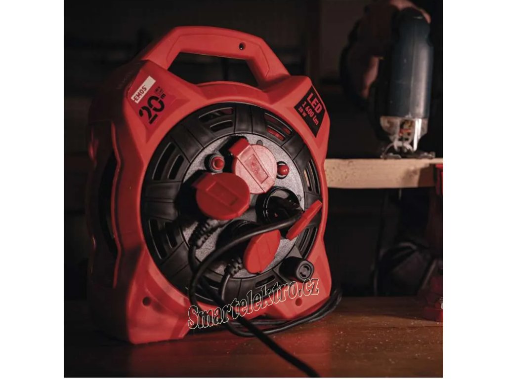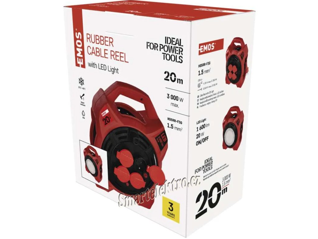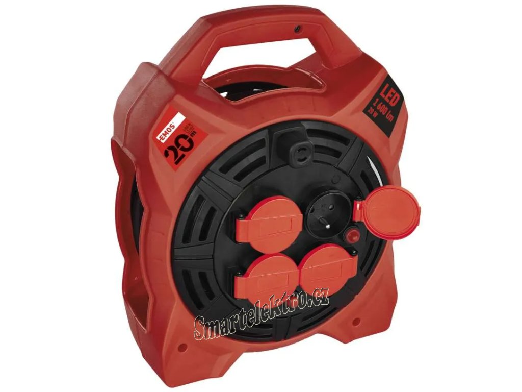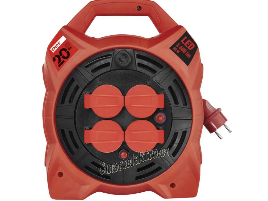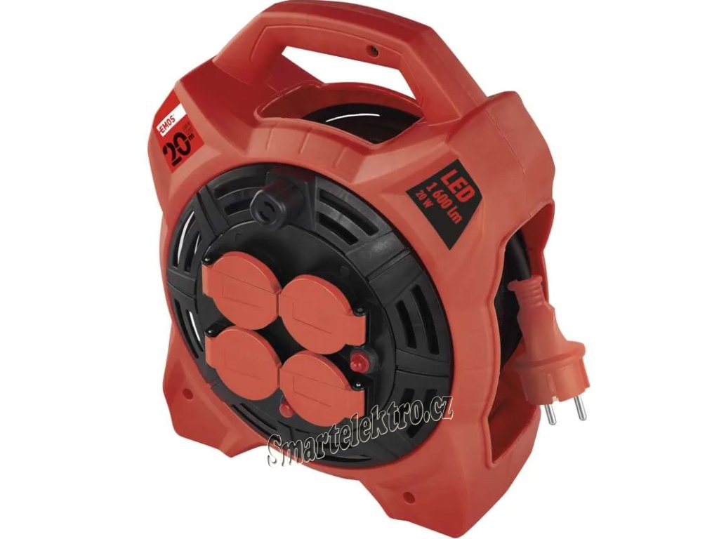 Emos venk. prodl. kabel na bubnu 20 m / 4 zás. / guma / 230 V / 1,5 mm2 s LED reflektorem, P08420