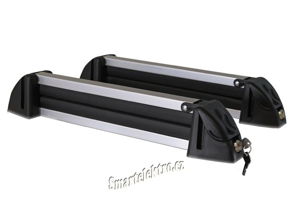 Sada 2ks střešních nosičů na 4 páry lyží (nebo 2x snowboard). Snadná a rychlá montáž na většinu typů příčných nosičů do maximální šířky 60mm.
