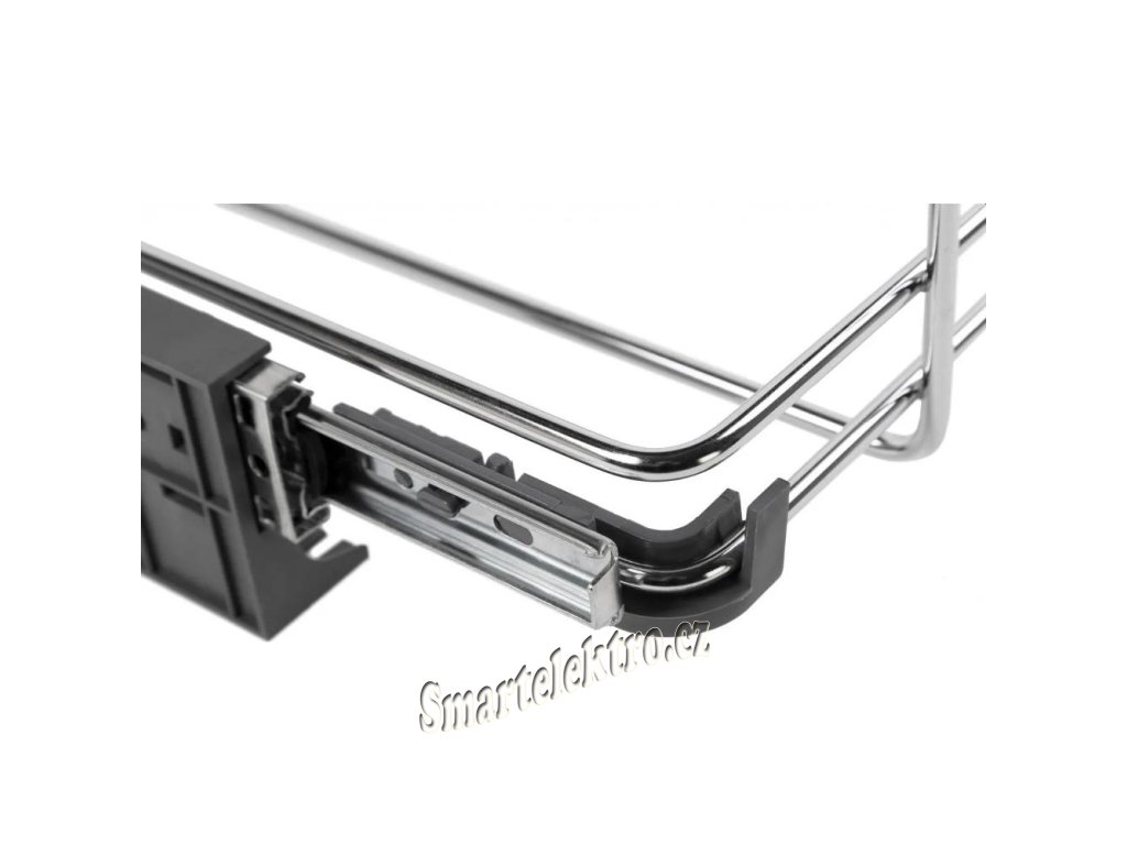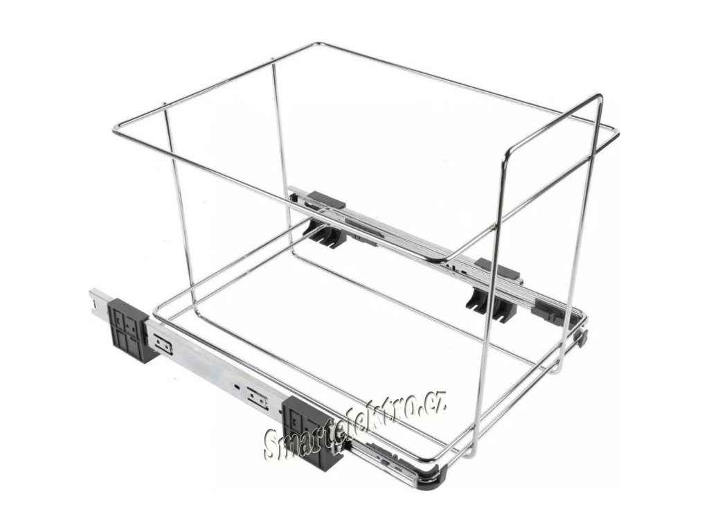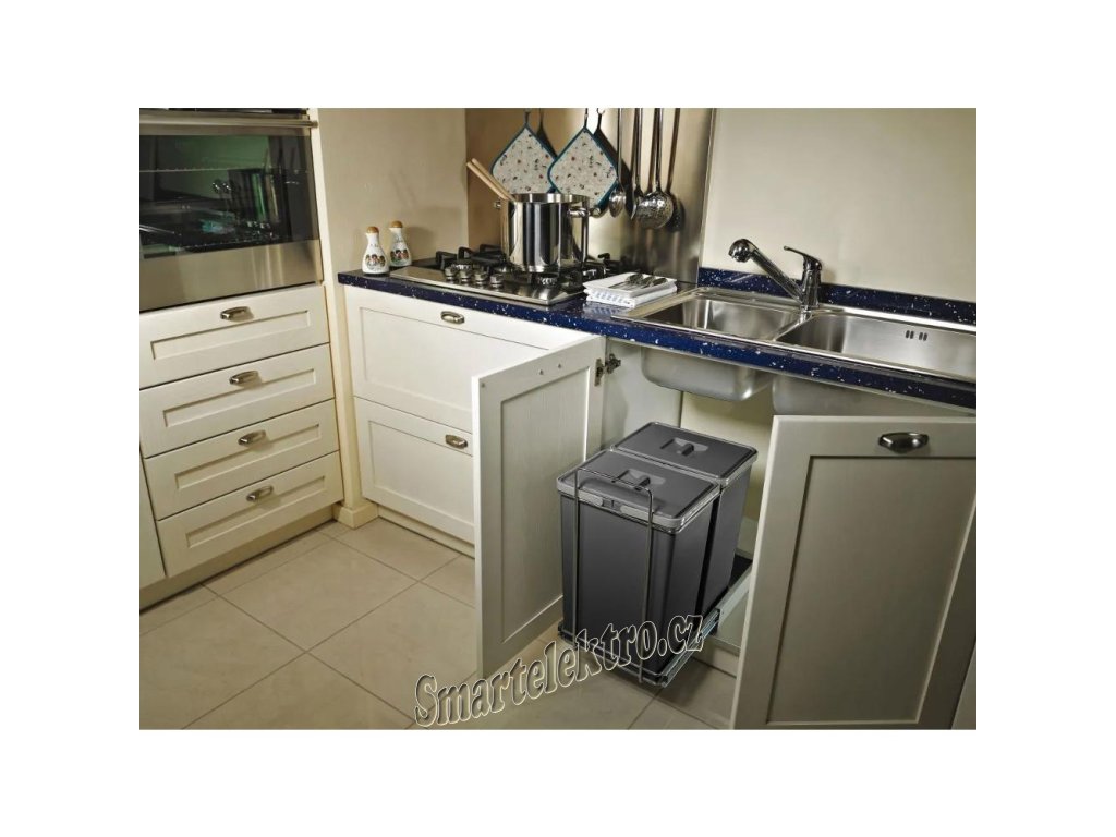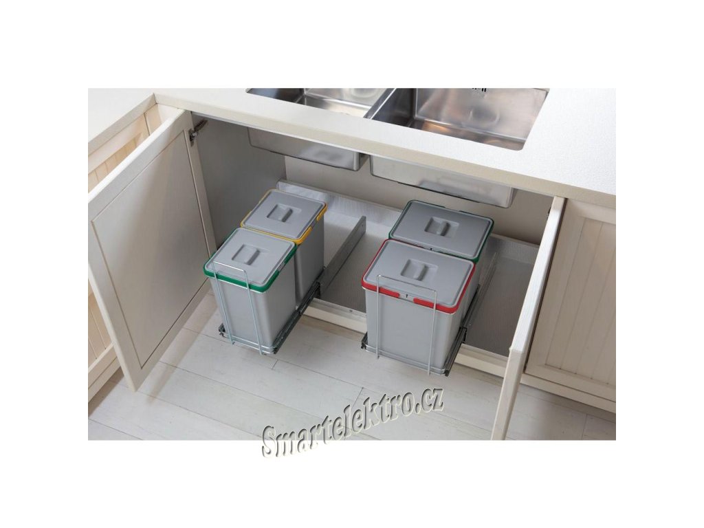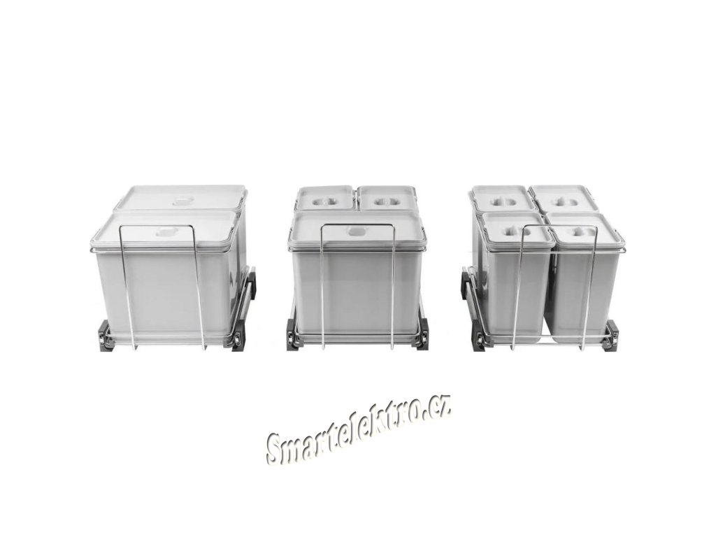 Koše se vysouvají z pevně zabudovaných pojezdů ve skříňce po otevření dvířek a vytahování je plné, takže se pohodlně dostanete ke každé nádobě