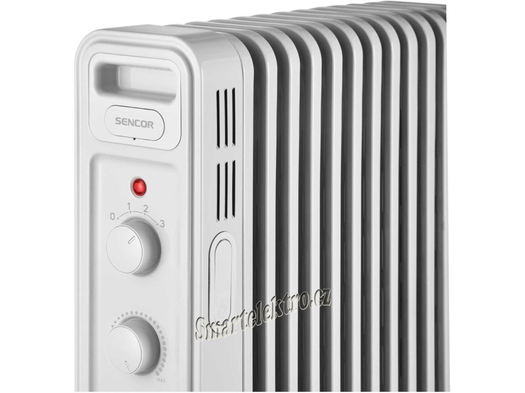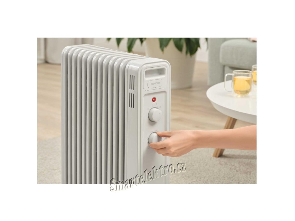 Elektrický olejový radiátor Haeger HAE-OH009006A Elan o výkonu 2 000 W, s nastavitelným termostatem a 3 stupněmi ohřevu.