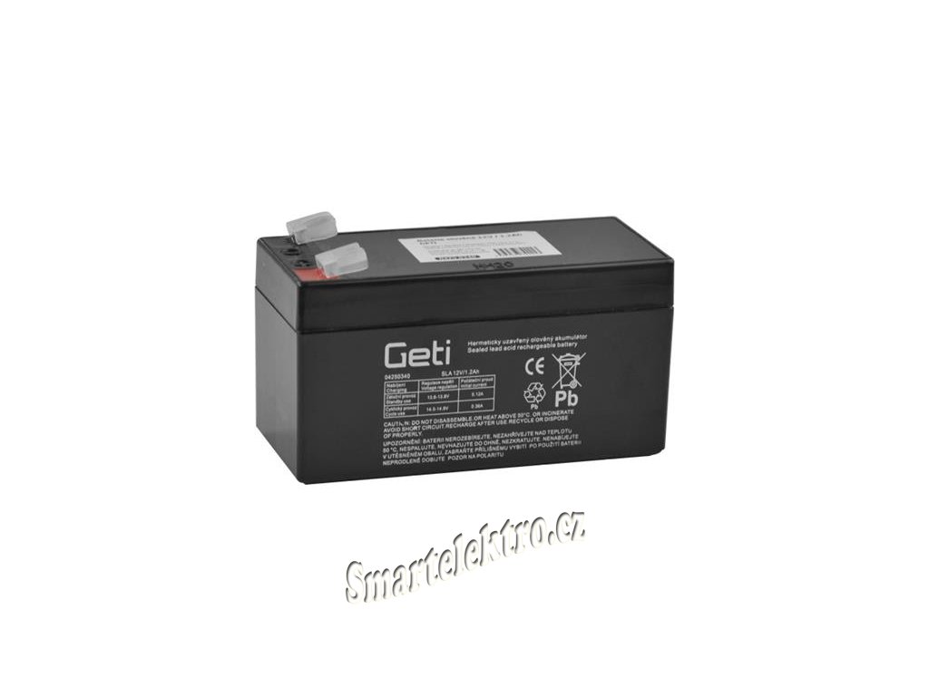 Baterie olověná 12V 1.2Ah GetiOlověný akumulátor Geti typu AGM premiové kvality. Je vhodný jako náhrada za baterie pro záložní systémy UPS, záložní zdroje pro veškeré aplikace EZS, EPS a telekomunikace, záložní svítidla a nabíjecí svítilny, hračky, řídící systémy, alarmy, výstražná mobilní a signalizační zařízení apod. Jedná se o bezúdržbový, hermeticky uzavřený akumulátor, což umožňuje libovolnou pracovní polohu.