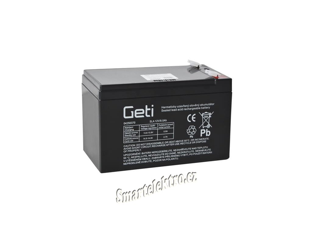 Baterie olověná 12V 9Ah GETI (konektor 6,35 mm)