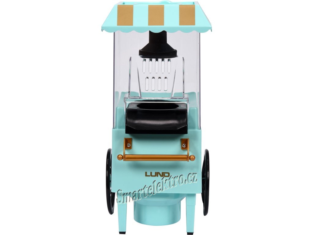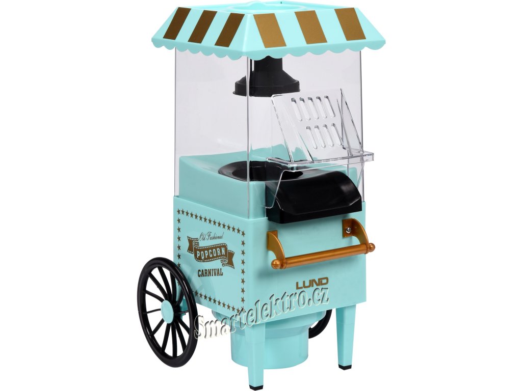 Vozík s horkovzduchem pracuje s příkonem 1200W a zajistí snadnou přípravu 50-60g popcornu během 3 minut, bez použití tuku.