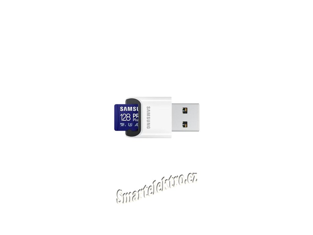 Superrychlá paměťová MicroSD kartaSAMSUNG MicroSDXC 128GB PRO Plus+USB adp