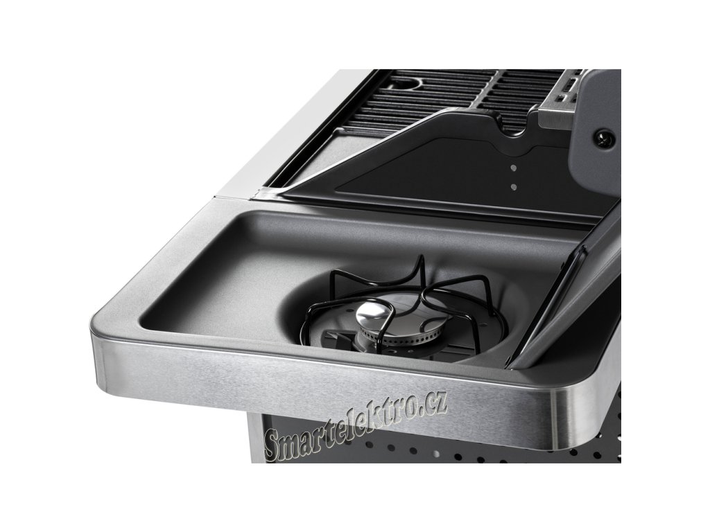 Nerezový plynový gril G21 California BBQ Premium Line s litinovým roštem, litinovým plátem, elektrickým zapalováním, plynovou regulací, s bočním hořákem o výkonu 3,15 kW a 3...
