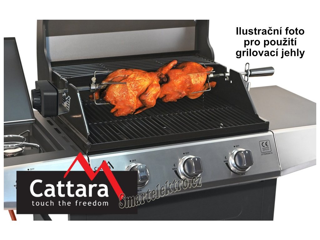 Konstrukce grilovacího prostoru je navržena tak, aby umožňovala snadné osazení grilovací jehlou s motorkem (např. Cattara 13053). Použití grilovací jehly zajistí pohodlnou připravu větších kusů mas, nebo kuřete s rovnoměrným otáčením.