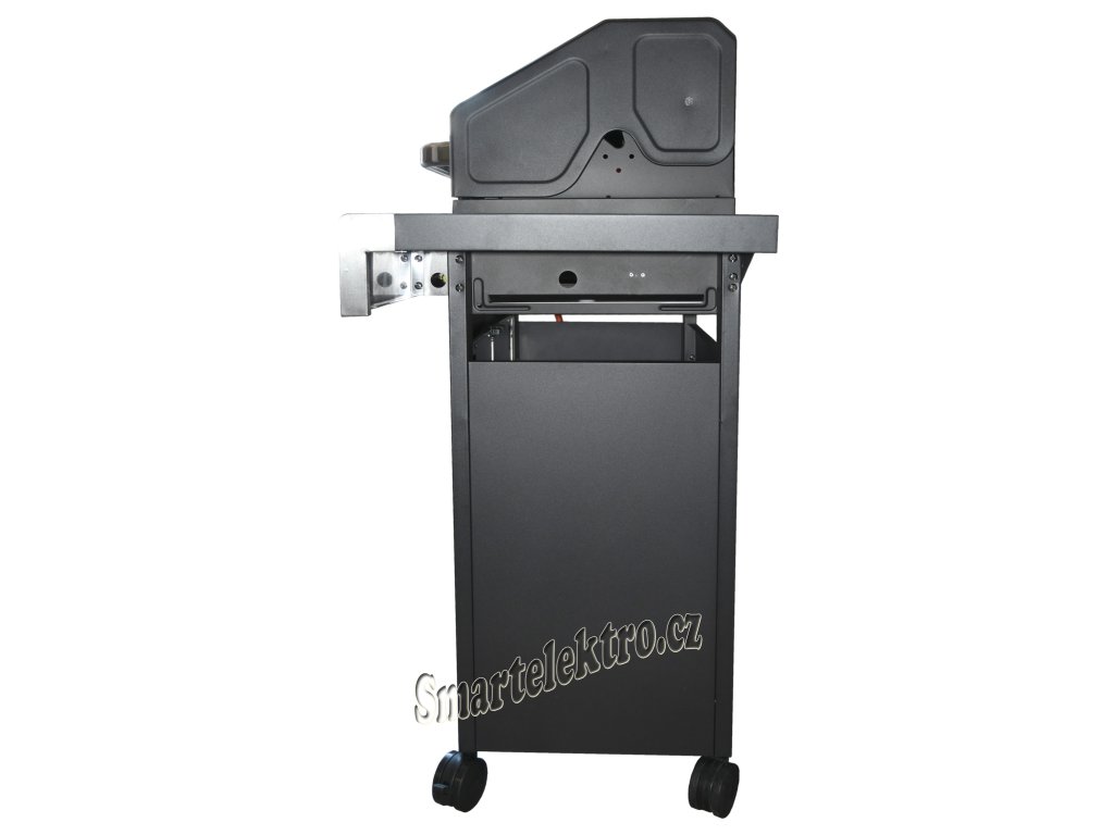 Manipulace s grilem je usnadněná díky 4 kolečkům. Jednotlivé prvky z leštěné oceli jsou pohodlné na úchop. Spodní část grilu je doplněna o praktickou skříňku s rozměry 53 x 68 cm opatřenou dvířky.