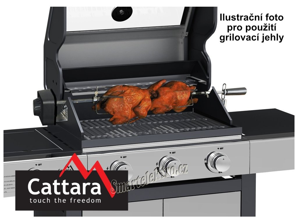 Konstrukce grilovacího prostoru je navržena tak, aby umožňovala snadné osazení grilovací jehlou s motorkem (např. Cattara 13053). Použití grilovací jehly zajistí pohodlnou připravu větších kusů mas, nebo kuřete s rovnoměrným otáčením.