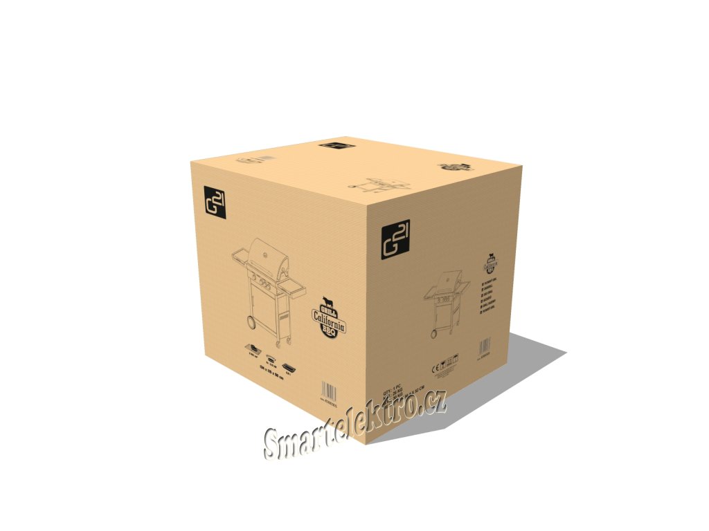 Plynový gril G21 California BBQ Premium Line je vybaven systémem Flame Tamer, litinovým roštem, litinovým plátem, elektrickým zapalováním, plynovou regulací, bočním hořákem s výkonem 3,15 kW a třemi hlavními nerezovými hořáky, každý o maximálním výkonu 3,5 kW.